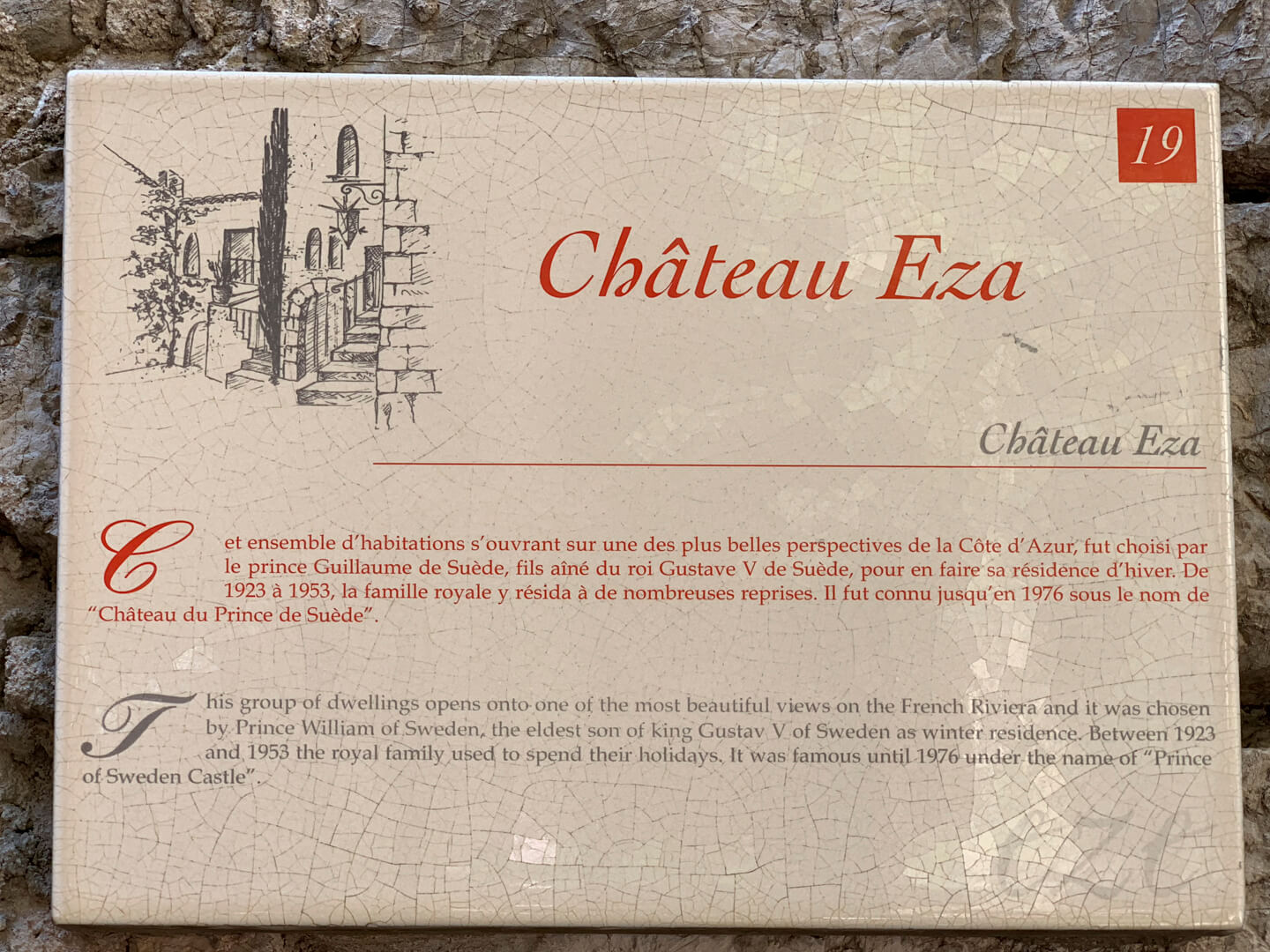 - The luxury hotels Château Eza, voted one of the 9 best hotels on the French Riviera by Condé Nast Traveler (and, interesting to me at least :-), where Prince William of Sweden spent a lot of time in the early to mid 1900s),